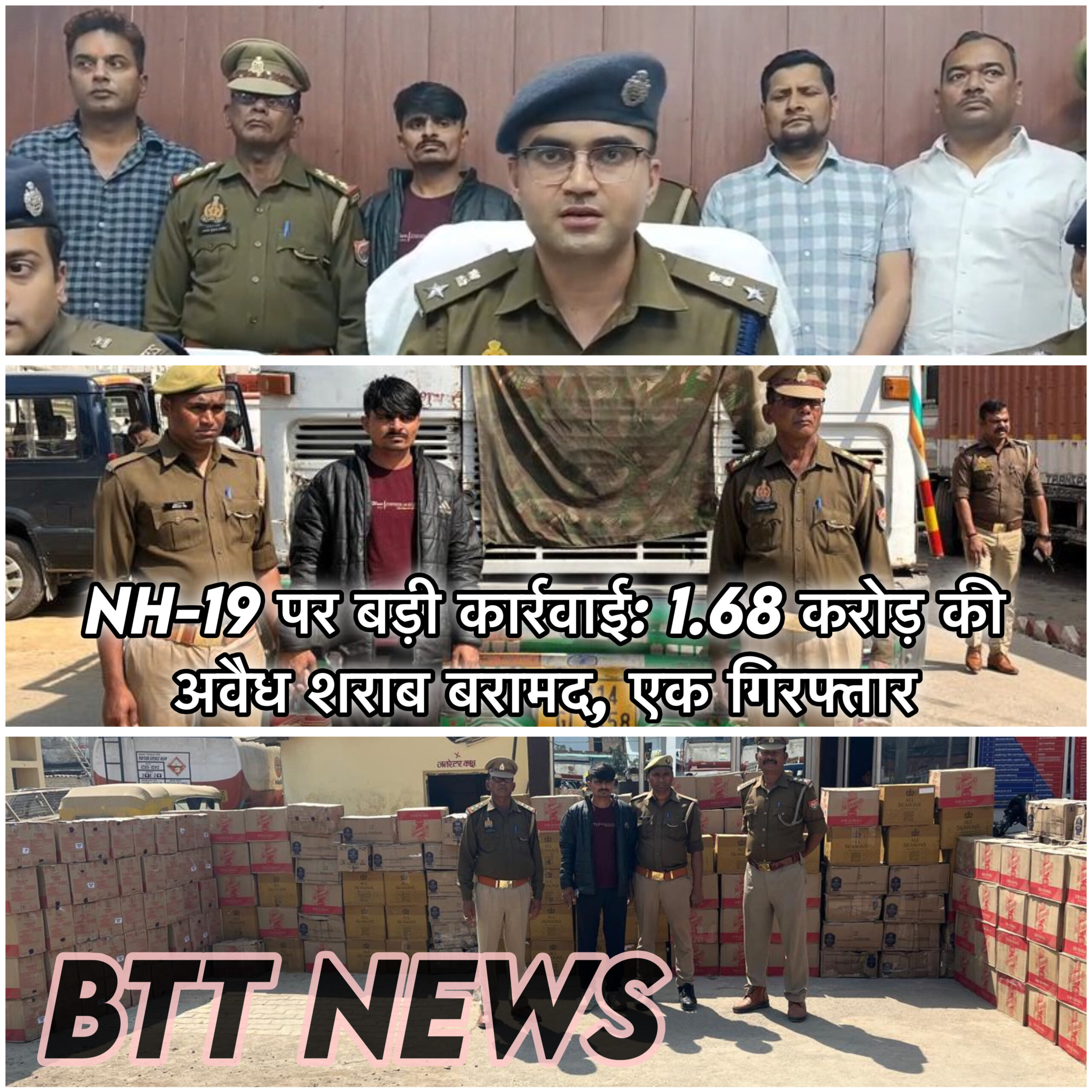 ट्रक में आलू की 30 बोरियों एवं चावल की भूसी की 50 बोरियों के नीचे शराब छिपाई गई थी। सभी पेटियों पर “For Sale in Punjab Only” अंकित था।