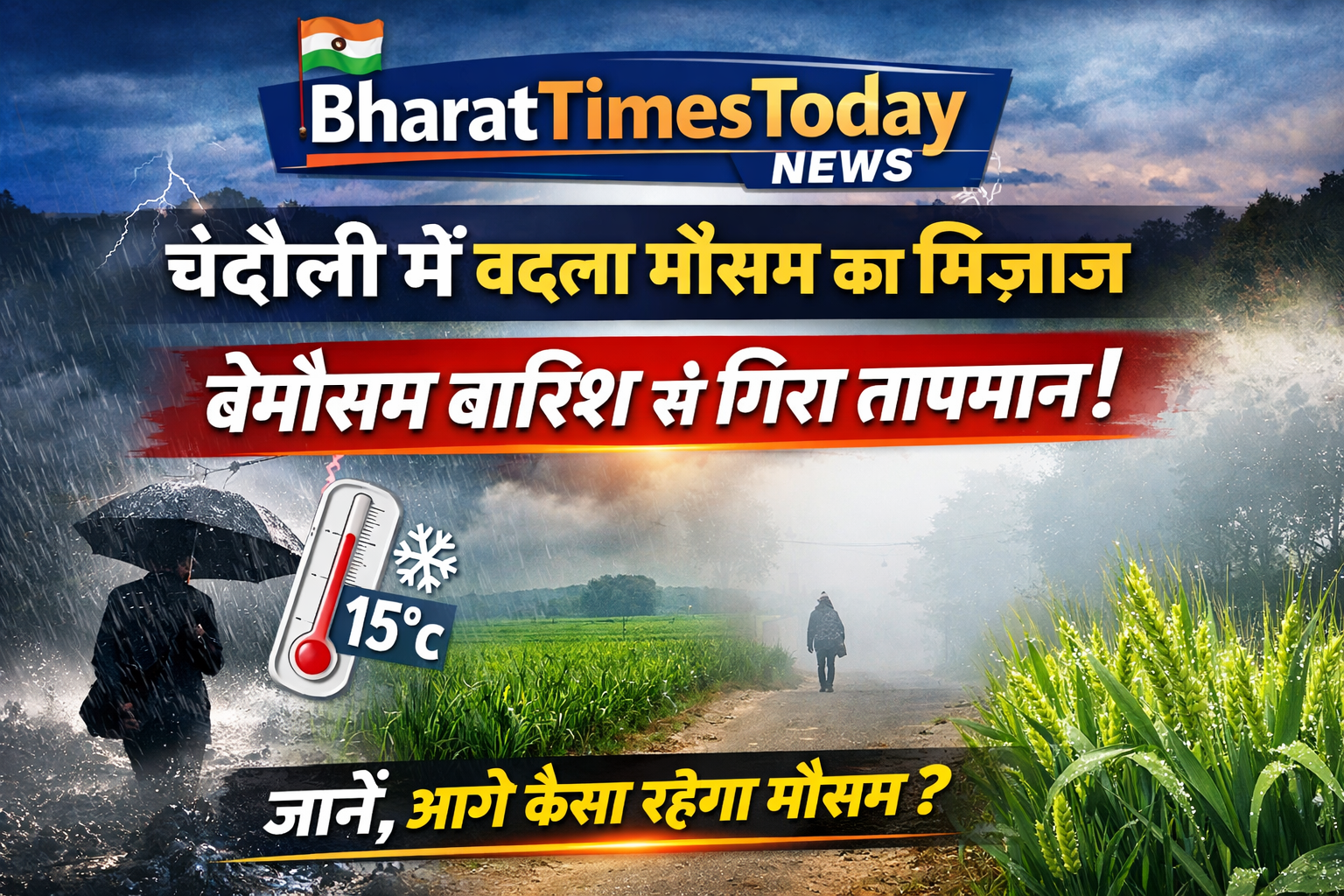 चंदौली :: वाराणसी की तरह ही चंदौली जिले में भी बेमौसम बारिश और तेज हवाओं के चलते मौसम ने अचानक करवट ले ली है। बीते 1–2 दिनों में हुई बारिश के कारण तापमान में गिरावट दर्ज की गई है, जिससे लोगों को मार्च के महीने में ही हल्की ठंड का एहसास हो रहा है।मौसम विभाग के अनुसार, पूरे उत्तर प्रदेश में पश्चिमी विक्षोभ के असर से बारिश और आंधी-तूफान का दौर देखने को मिल रहा है, जिसका प्रभाव पूर्वी यूपी के जिलों जैसे चंदौली में भी साफ नजर आ रहा है।