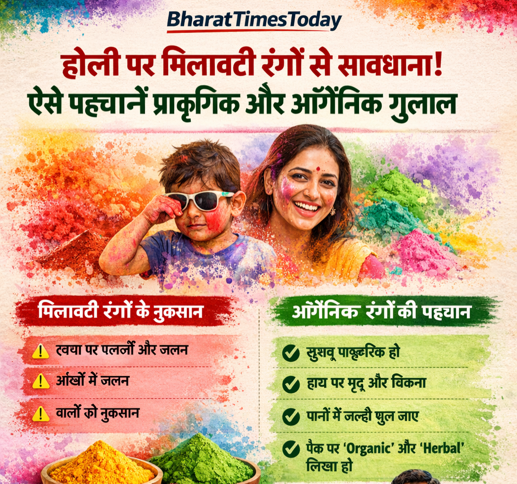 BharatTimesToday News अपने पाठकों से अपील करता है कि इस होली प्राकृतिक और ऑर्गेनिक रंगों का ही उपयोग करें, ताकि त्योहार की खुशियां सेहत के साथ मनाई जा सकें।
