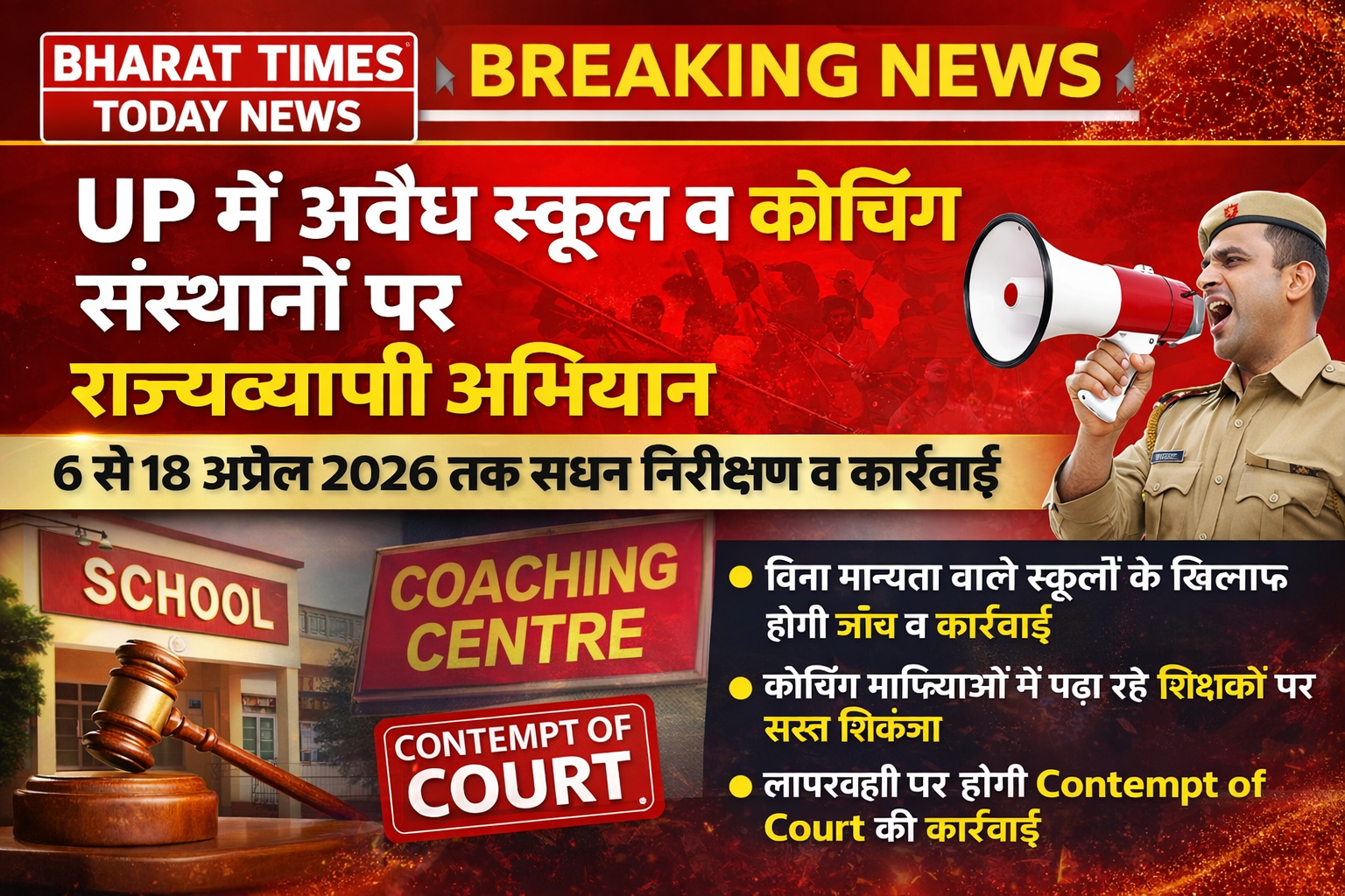 UP में शिक्षा विभाग का बड़ा एक्शन: अवैध स्कूल और कोचिंग संस्थानों पर राज्यव्यापी अभियान, 6–18 अप्रैल तक चलेगी सघन जांच